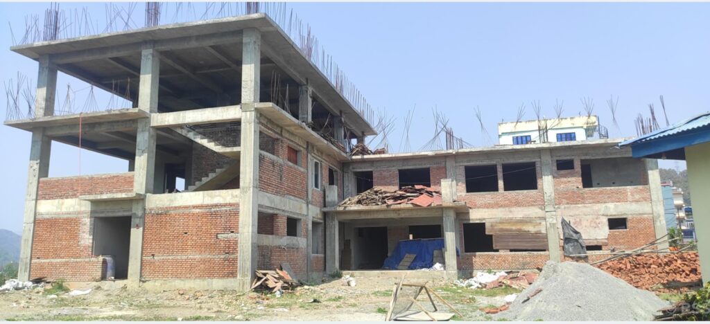 ठेकेदारको लापरबाहीले सुस्त गतिमा काम गरेकाले २५ प्रतिशत काम अझै बाँकी छ । प्रमुख अधिकारीले भन्नुभयो, “द्रुतगतिमा काम गरेर छ महिनाभित्रै निर्माण सम्पन्न गर्ने प्रतिबद्धता जनाएपछि म्याद थप भएको छ ।” भवन निर्माणको जिम्मा इको बिल्डर्सले पाएको हो ।