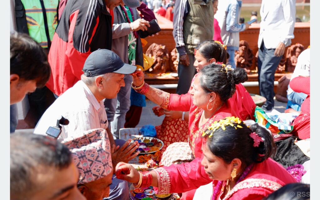काठमाडौँ, असोज ६ गते । तिहारको प्रमुख भाइटीकाका दिन आज काठमाडौँको ऐतिहासिक रानीपोखरीमा रहेको बालगोपालेश्वर मन्दिरमा दिदीबहिनी नहुने दाजुभाइले टीका लगाउँदै आपसी माया, स्नेह र आस्थाको पर्व मनाएका छन् ।