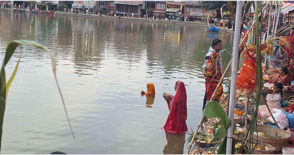 भक्तपुर नगरपालिका–१० कमलविनायकस्थित कमलपोखरीमा २०० भन्दाबढी परिवारले छठ पर्व मनाएका छन् । यसका लागि पोखरी सिँगारेर झकिझकाउ बनाइएको छ भने पोखरीमा लगाइएको बत्तीहरूले झिलीमिली बनाएको छ ।