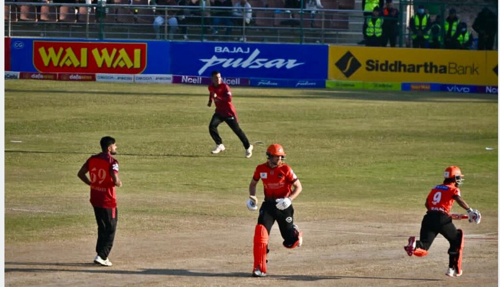 पहिले ब्याटिङ गरेको चितवनले निर्धारित २० ओभरमा ६ विकेटको क्षतिमा १२० रन मात्रै बनाउन सक्यो । चितवनका लागि देव खनालले सर्वाधिक ३५ र अल्पेश रामजानीले अविजित ३३ रन बनाए । पोखराका धनन्जय लक्षनले ३ विकेट लिए ।