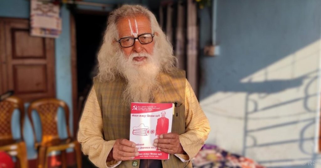 मेचीनगर–१ गाडागल्ली निवासी भट्टराई यही फागुन २१ गते हुने प्रतिनिधिसभा सदस्यको निर्वाचनमा नेपाल किसान मजदुर पार्टीको उम्मेदवार हुनुहुन्छ । उमेरले पाको भए पनि उहाँ मतदाताको घर आँगन डुलेर मत माग्दा पटक्कै थाकेको देखिनुहुन्न ।