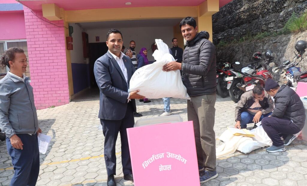 निर्वाचनका लागि आबश्यक पर्ने मतपत्र मुख्य निर्वाचन अधिकृतको कार्यालयबाट र अन्य ५१ प्रकारका सामाग्री जिल्ला निर्वाचन कार्यालयबाट मतदान अधिकृतलाई बुझाइएको छ ।