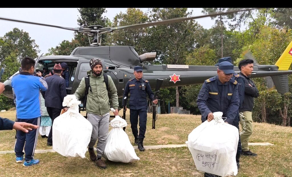 गोरखा, फागुन २३ गते । गोरखा क्षेत्र नम्बर १ अन्तर्गत उत्तरी गोरखाको चुमनुब्री गाउँपालिकाका सबै मतपेटिका आज सदरमुकाम ल्याइएको छ । बिहान नेपाली सेनाको हेलिकप्टरमार्फत बाँकी १४ वटा मतदान केन्द्रको मतपेटिका पनि सदरमुकाम ल्याई पु¥याइएको गोरखाका सहायक प्रमुख जिल्ला अधिकारी नेत्रप्रसाद शर्माले जानकारी दिनुभयो ।