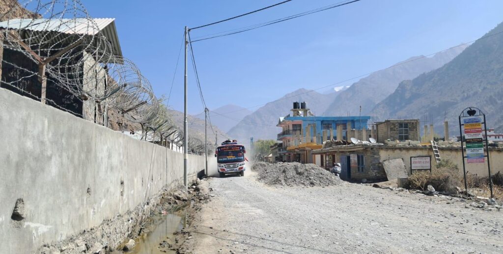 निर्माणाधीन सडकअन्तर्गत जोमसोमस्थित नेपाली सेनाको ब्यारेक अगाडि कालोपत्रका लागि फिलिङ गर्न माटो थुपारिएकाले सवारी आवागमनमा समस्या परेको छ । त्यसैगरी कालोपत्र ढिलाइ हुँदा त्यहाँस्थित सेनालाई धुवाँधुलोले पनि असर पुर्याएको देखिन्छ ।