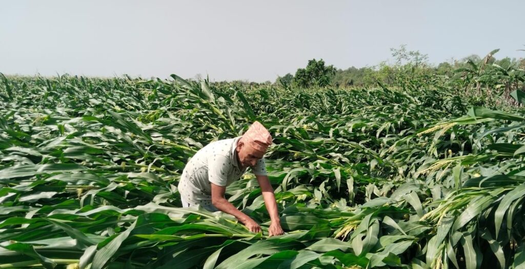 सोमबार आएको हावाहुरीले हजारौँ बोट केरा ढल्दा वर्षभरिको मेहनत एकैछिनमा नष्ट भएको स्थानीय कृषक दीपक गौतमले बताउनुभयो । लगानी, श्रम र समय सबै गुम्दा किसान आर्थिक रूपमा धरासायी हुने अवस्थामा पुगेका छन् ।