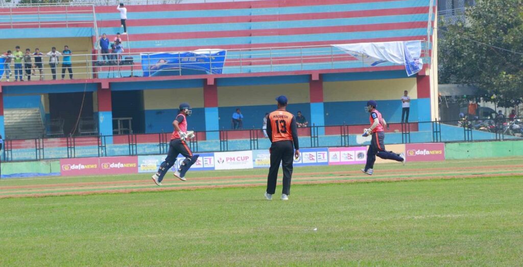 काठमाडौँ, चैत ८ गते । प्रधानमन्त्री कप एकदिवसीय पुरुष राष्ट्रिय क्रिकेट प्रतियोगितामा एपीएफ क्लबले बागमती प्रदेशलाई पराजित गर्दै जित हासिल गरेको छ । काठमाडौँको मूलपानिस्थित माथिल्लो मुूपानी क्रिकेट मैदानमा आज भएको खेलमा एपीएफले बागमती प्रदेशलाई ७१ रनले पराजित गर्दै जित हासिल गरेको हो । २७२ रनको लक्ष्य पछ्याएको बागमती प्रदेश ४५।१ ओभरमा सबै विकेट गुमाउँदै २०० रनमै समेटियो ।