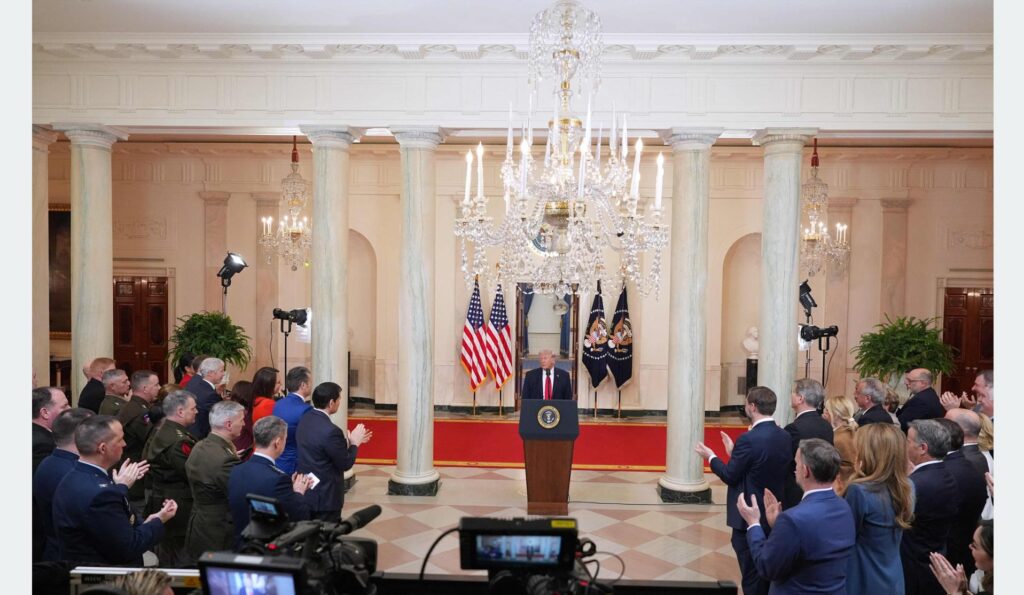 ह्वाइट हाउसबाट बुधबार साँझ सम्बोधन गर्दै ट्रम्पले संयुक्त राज्य अमेरिका आफ्नो लक्ष्य हासिल गर्ने चरणमा पुगेको बताउनुभयो, तर युद्ध कसरी र कहिले टुङ्गिन्छ भन्नेबारे स्पष्ट खाका प्रस्तुत गर्नुभएन । उहाँले ‘काम छिट्टै पूरा गरिने’ दाबी दोहोर्याउँदै अमेरिकी आक्रमण अझ तीव्र हुने सङ्केत गर्नुभयो ।