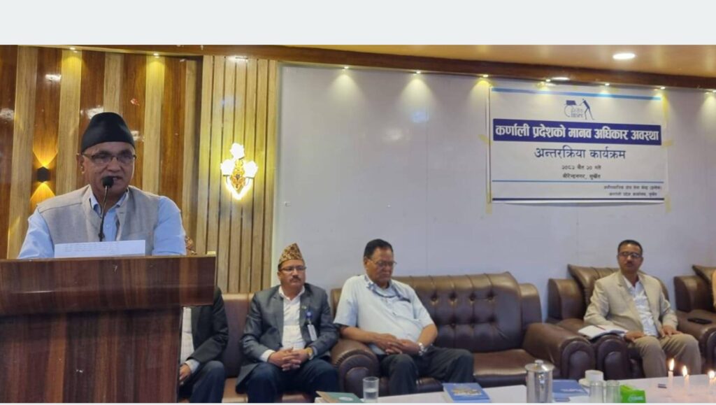 सुर्खेत, चैत २० गते । कर्णाली प्रदेशका मुख्यमन्त्री यामलाल कँडेलले आमनागरिकले सुरक्षित महसुस गर्नुपर्ने बताउनुभएको छ । आज वीरेन्द्रनगरमा आयोजित मानवअधिकारसम्बन्धी एक कार्यक्रममा उहाँले राज्य भनेको अभिभावक भएकाले हरेक नागरिकले सुरक्षाको प्रत्याभूत गर्नुपर्ने उहाँको भनाइ थियो । उहाँले भन्नुभयो, “म मुख्यमन्त्री भएकाले राज्यले दिएको सुरक्षा घेराभित्र छु तर आमनागरिकहरू ढुक्कसँग बाँच्नुपर्ने छ । राज्यले यसतर्फ ध्यान दिनुपर्दछ ।”