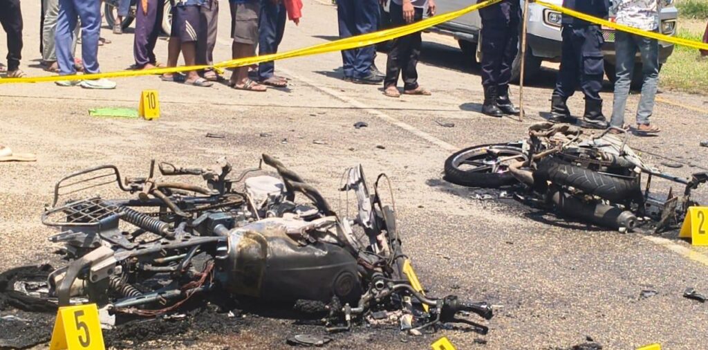 महोत्तरी, चैत २४ गते । जलेश्वर बर्दिबास सडकखण्डको बथनाहा गाउँमा आज बिहान दुई वटा मोटरसाइकल एकापसमा ठोक्किएर आगलागी हुँदा तीन विद्यार्थीको जलेर मृत्यु भएको घटनाको थप विवरण सार्वजनिक गरिएको छ । मृत्यु हुनेमा जिल्ला सदरमुकाम जलेश्वर नगरपालिका–६ बस्ने सुरेन्द्र दासका छोरा अन्दाजी २० वर्षीय शुभाष दास, रामदयाल दासका छोरा अन्दाजी २० वर्षीय रवि दास र एकडारा गाउँपालिका–३ बस्ने शत्रुध्न मण्डलका छोरा अन्दाजी २० वर्षीय अभिषेक मण्डल रहेको प्रहरीले जनाएको छ ।