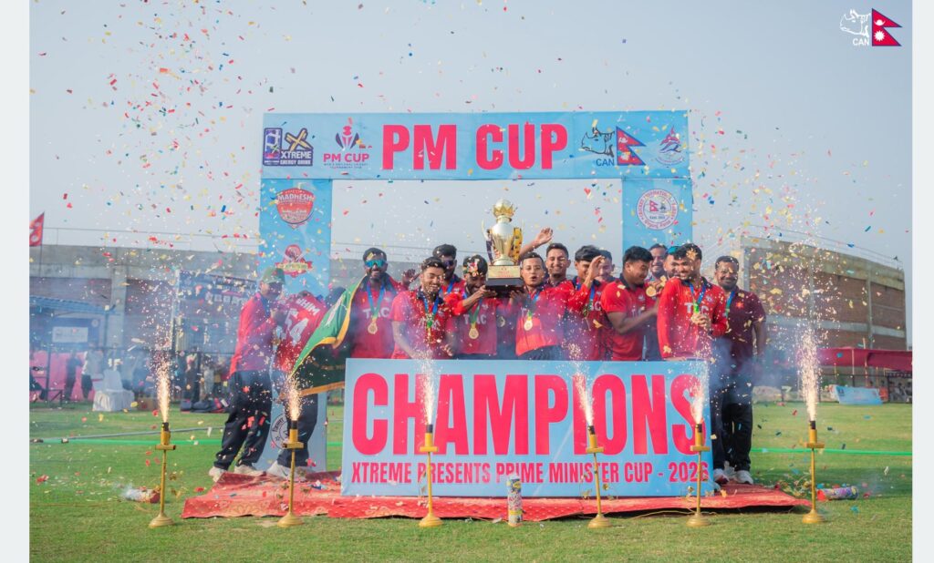 पर्सा, वैशाख ४ गते । प्रधानमन्त्री कप पुरुष क्रिकेट प्रतियोगिताको उपाधि त्रिभुवन आर्मी क्लबले जितेको छ । आज वीरगन्जको नारायणी रङ्गशालामा भएको फाइनल खेलमा त्रिभुवन आर्मी क्लबले सुदूरपश्चिम प्रदेशलाई पाँच विकेटले पराजित गर्दै उपाधि रक्षा गरेको हो ।