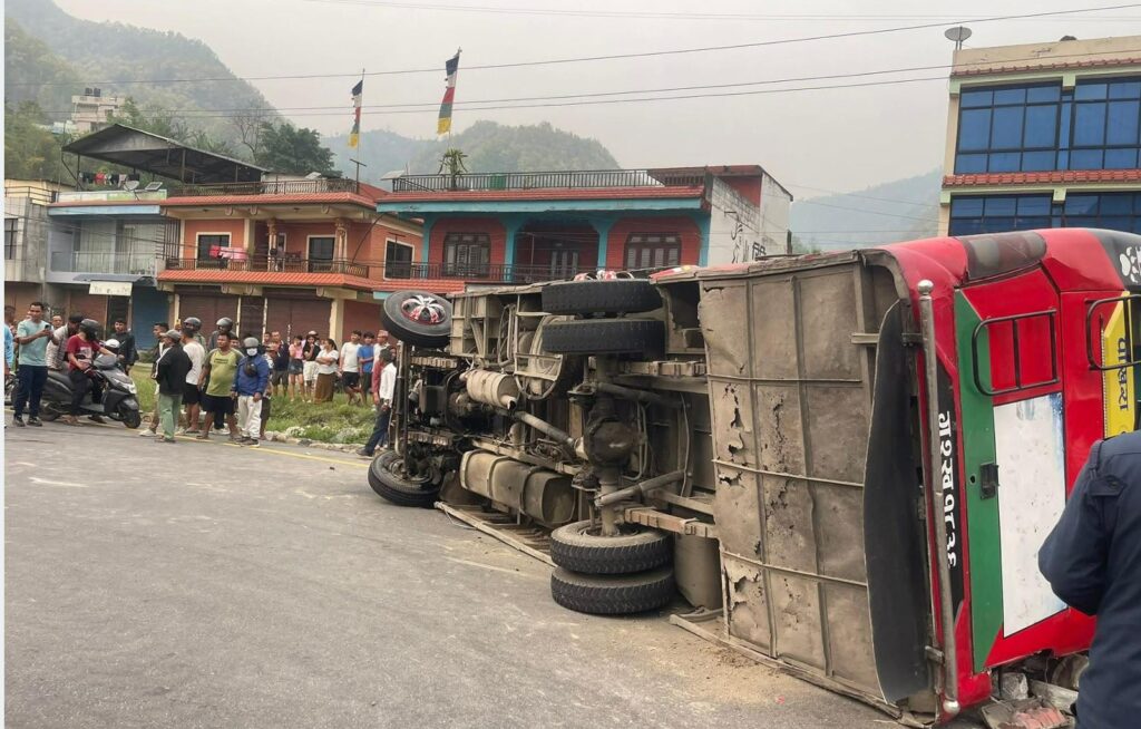 जिल्ला प्रहरी कार्यालय तनहुँका प्रहरी नायव उपरीक्षक श्रवणकुमार विकका अनुसार पोखराबाट भैरहवातर्फ जाँदै थियो । तिव्रगतिमा गुडेको बस के कारणले सडकमा पल्टिन पुग्यो भन्नेबार यकिन भइनसकेको प्रहरीले जनाएको छ । दुर्घटनामा परी घाइते भएका सबैलाई बेलचौतारास्थित जिपी कोइराला श्वासप्रश्वास उपचार केन्द्र लगिएको