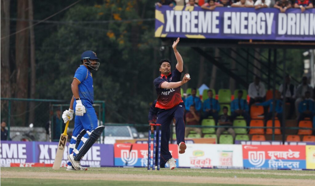 बलिङतर्फ नेपालका करण केसीले ४, सोमपाल कामी र सन्दीप लामिछानेले २–२ तथा दीपेन्द्रसिंह ऐरी र ललित राजवंशीले एक–एक विकेट लिन सफल भएका थिए ।