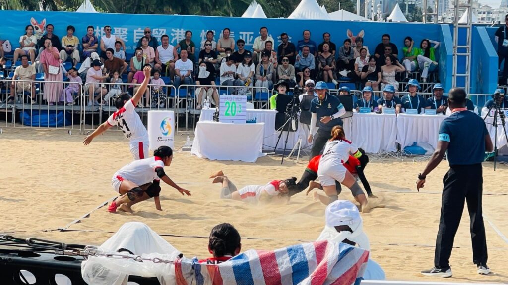 काठमाडौँ, वैशाख १३ गते । छैटौँ एसियन ‘बीच गेम्स’ २०२६ को समूह ‘बी’ अन्तर्गतको अन्तिम खेलमा नेपालले बङ्गलादेशलाई पराजित गरेको छ । चीनको हाइनान्स्थित सन्या सहरमा आज भएको खेलमा नेपाल बङ्गलादेशलाई ३८–३६ ले पराजित गर्दै विजयी भएको हो । यससँगै नेपाल समूह ‘बी’ को विजेताको रूपमा सेमिफाइनलमा प्रवेश गरेको हो । नेपाल समूह ‘बी’ मा अपराजित रहँदै सेमिफाइनल खेल्न लागेको हो ।
