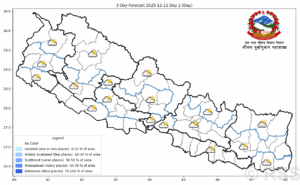 काठमाडौँ, पुस ३ गते । देशभर कुनै उल्लेखनीय मौसम प्रणालीको प्रभाव नरहेको जल तथा मौसम पूर्वानुमान महाशाखाले बताएको छ । ...