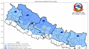 काठमाडौँ, चैत १८ गते । हाल देशमा पश्चिमी वायुका साथै स्थानीय वायुको प्रभाव रहेको जल तथा मौसम पूर्वानुमान महाशाखाले जनाएको छ । यसका कारण बागमती, गण्डकी, कर्णाली, सुदूरपश्चिम र लुम्बिनी प्रदेशलगायत देशका हिमाली तथा पहाडी ...
